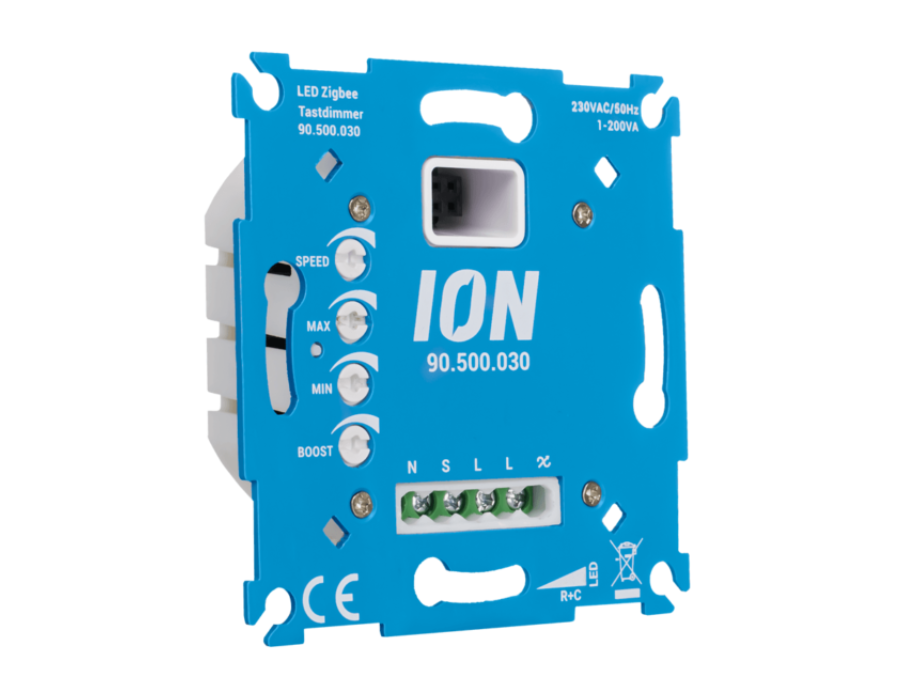 Qua afwerking kies je zelf het design: de dimmer is compatibel met afdekmateriaal van alle bekende merken, waaronder de afdekplaten van ION INDUSTRIES.